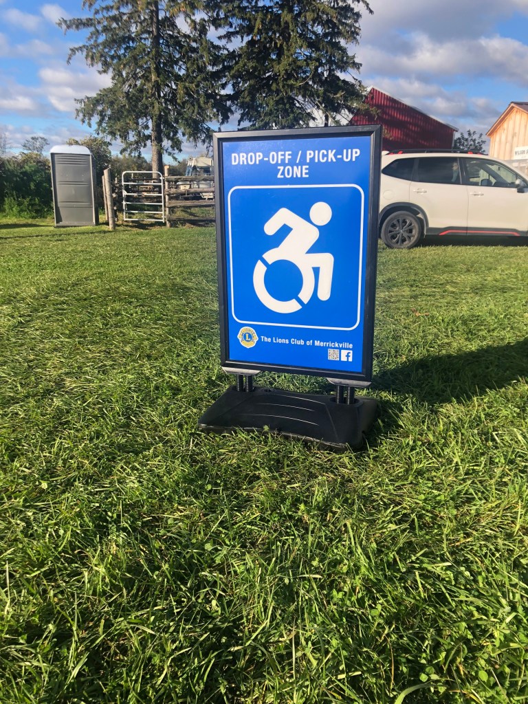 Accessible sign being used for the first time at Fall for Merrickville hosted by Heritage Stables!