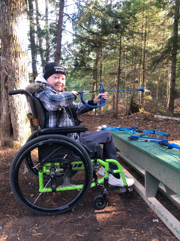 At the archery range, I am not physically able to hold a bow. No problem! They have an adaptable sling-shot made for people with dexterity issues. Not saying I was any good, but at least I got the chance to enjoy the activity like anyone else would. There is also a high-ropes course on site. Believe it or not, the first level can be completed in a chair. It is actually a fun experiment that campers can challenge themselves with. Controlling a chair from that height is no roll in the park.