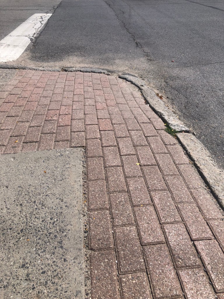 For me to get around, this break is vital, and its state of repair is critical. My chair cannot magically go up a step on the curb any more than it can climb a set of stairs. It is important for everyone to realize that without this slope, wheelchair users cannot get onto or off of the sidewalk, meaning we have to stay on the road to travel. This is simply dangerous for both me, drivers of oncoming cars, cars going the other direction, and bystanders. It means traffic needs to avoid me, which is risky. And this is if they see me. I am in constant fear of being hit or an accident occurring.