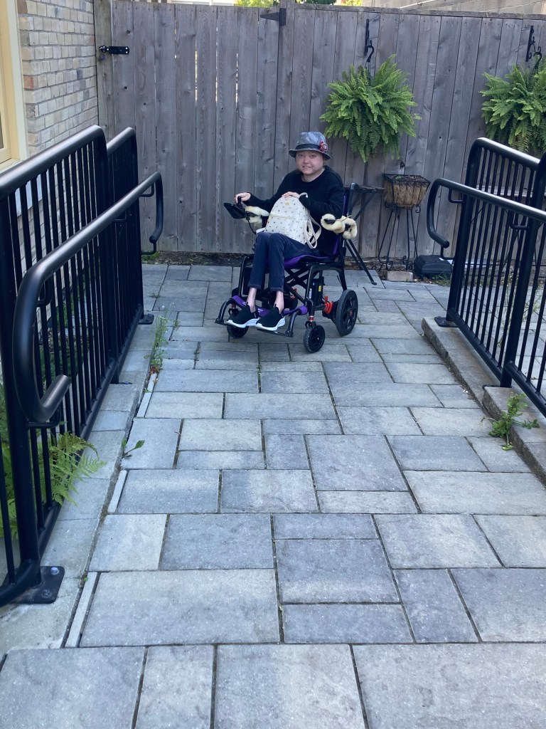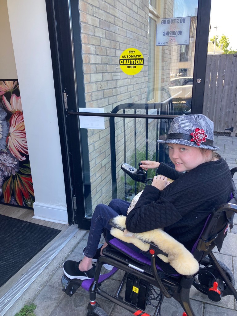 Always looking for a nice place to grab lunch. A great option is C’est Tout Bakery and Bistro in Smiths Falls Ontario. It is on the main drag, where the sidewalks have nice curb cuts due to recent construction work. At the side of the building there is a lovely ramp. The slope is nice and gentle and leads to a door with a working actuator (wheelchair button). Once inside, there is a clear path to tables with removable chairs. We had lunch, and it was delicious! They had something for everyone, including vegetarian options for my Mom. Even the bathroom had actuators and wide stalls for wheelchairs. The staff was friendly and dedicated to making their establishment as accessible as possible. They graciously took the few pointers I gave them, like lowering the paper towel holder. I would definitely go back and recommend this bakery to other wheelchair users. Thumbs up!