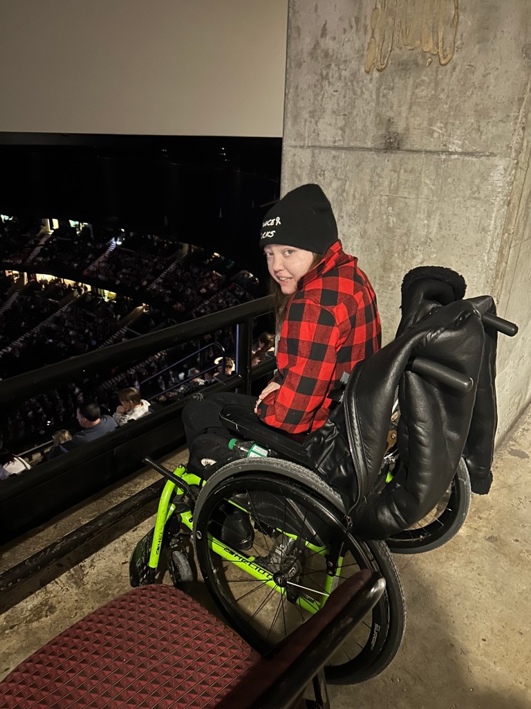 I recently saw Brad Paisley live at the Canadian Tire Centre. I went with my sister and her boyfriend. So here is the accessibility scoop. When we arrived, the very front parking lot by the doors was reserved for accessible parking. All of the spots were extra wide. It cost a fair amount to park there, but it’s definitely worth it. It is right next to the accessible entrance. This entrance has a wide metal detector that most chairs fit through. Once through, an attendant scans your ticket and you are in.